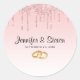 Un autocollant mariage simple et moderne. L'arrière - plan a une image de parties scintillant rose étincelante gouttes au sommet. Le reste de l'arrière - plan est un délicat dégradé de couleur rose pastel.2 bandes mariages or sous le texte personnalisé.