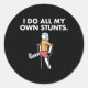 Un design amusant avec une jambe cassée et la phrase "I Do My Own Stunts," symbolisant la résilience et un esprit positif en temps de blessure.