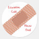 Un autocollant blanc qui dit Education Cuts Never Heal en rouge écriture. Représente l'image d'un bandage de bandaid.
