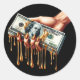 Sticker Rond les femmes donnent 100 dollars de billet d'or liqu