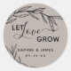 sticker en pierre de terre avec feuilles de laurier, laissez l'amour grandir dans le script et la police moderne. Idéal pour le sceau de faveur de mariage