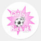 Les filles le frappent sur le terrain de Soccer ! Jolie parties scintillant rose et éclats colorés avec des boules de football. Grand maillot de football bling bling pour les filles.