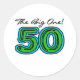 Un grand nombre de 50 en bleu cool, texte vert est présenté sur nos grands T-shirts à 5-0 ans, tasses, boutons et autres vêtements à 50e anniversaire.C'est le grand !