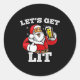 Sticker Rond Let's Get Lit Santa Claus Drinking Beer Christmas
