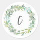 Utilisez ce design épuré avec une couronne de verdure à feuilles d'eucalyptus et une lettre monogramme C pour une variété d'occasions : sacs de faveur, scellés d'enveloppe, etc.