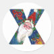 STICKER ROND LETTRE CHRISTMAS X / SANTA CLAUS AVEC RIBBON ROUGE