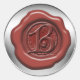 La lettre B. Ajoutez une touche élégante à tout projet de lettre, de carte, d'emballage, de document ou d'artisanat avec ce design de cire d'étanchéité rouge. Un défilement délicat entoure la lettre d'un "vieux monde" tout en étant perché sur un disque d'argent pour un style moderne.