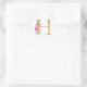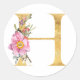 Sticker Rond Lettre H monogramme dorée avec fleurs