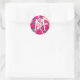 Sticker Rond Lettre M Aquarelle rose Monogramme circulaire