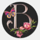 STICKER ROND LETTRE MONOGRAMME B AVEC ROSES ET BUTTERFER