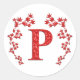 Sticker Rond Lettre monogramme P Feuilles rouges