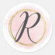 Sticker Rond Lettre R Monogram Blush Rose Aquarelle or chic