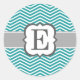 Sticker Rond LETTRE turquoise MONÂTRE BLANC E Chevron