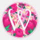Sticker Rond Lettre W Aquarelle rose Monogramme circulaire