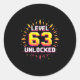 Sticker Rond Level 63 Unlocked Birthday Gift Gamer Milestone