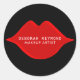 Sticker Rond lèvres rouges sur noir pour une beauté maquilleuse