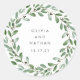 Ces autocollants de mariage branchés sont ornés d'une couronne de feuilles vert aquarelle abondants et de quelques petits fruits sur un arrière - plan blanc propre.