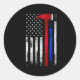 Sticker Rond Ligne Bleue Bleu Mince Drapeau Américain Ax Pompie