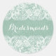 Elégant style menthe-vert faux lin look arrière - plan avec dentelle florale blanche personnalisable bridesmaids autocollant. Si vous avez besoin d'aide pour customiser une des conceptions ArtOnWear, contactez le concepteur ArtOnWear en cliquant sur le bouton Demander à ce concepteur. Bouton est juste sous l'image du produit et l'information. Mise en forme de texte gratuite avec aide en direct disponible sur demande.