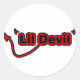 Lil Devil - Un design de texte mignon et délirant en rouge et noir avec des cornes démoniaques et une queue fourrée.