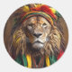 Sticker Rond Lion Homme Habillé En Tenue Rastafarienne