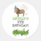 Une jolie illustration d'un lion qui fait la fête et s'amuse ! Un lion portant un casquette de fête et faisant cor de fête avec des confettis qui pleuvent dessus. Que les célébrations commencent ! Parfait pour tous ceux qui aiment les illustrations et chats d'animaux amusants. Idéal pour un autocollant d'anniversaire, customiser avec le nom et l'âge.