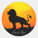 Sticker Rond Lion sauvage & lever de soleil sur un Merci de jun