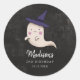 Joli thème halloween fête d'anniversaire de faveur autocollant représentant l'illustration d'un fantôme avec un casquette sorcier sur un arrière - plan de tableau noir. Parfait pour une fête d'enfant à l'automne.