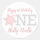 Ce design de premier anniversaire sur le thème du flocon de neige/hiver présente un joli flocon rose dans le "o" de "one" accentué de parties scintillant en argent! Cliquez sur le bouton personnaliser pour plus de flexibilité en ajoutant votre texte ! Des variantes de ce design, des couleurs supplémentaires, ainsi que des produits de coordination sont disponibles dans notre boutique, zazzle.com/doodlelulu*. Contactez-nous si vous avez besoin que cette conception s'applique à un produit spécifique pour créer votre propre article de correspondance unique! Merci tellement pour voir un DoodleLulu par 2 june conception de bogues!