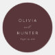 This elegant design features a sophisticated maroon background with clean, modern typography that exudes timeless charm. The minimalist style focuses on the text, creating an understated yet refined look perfect for wedding stickers. With its simple and classic aesthetic, it captures a mood of grace and celebration, making it ideal for special moments like weddings. These stickers are versatile and can be used to add a touch of elegance to invitations or other event materials, ensuring your occasion feels both personal and polished.