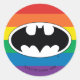 Pride DC | Logo emblématique de Batman avec des couches de couleurs arc-en-ciel à l'intérieur.