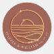 Élevez votre présentation mariage avec ces autocollants ronds personnalisés avec un emblème minimaliste de la ligne de soleil sur un arrière - plan rouge-brun chaleureux. Personnalisés avec les noms du couple et la date du mariage, ces élégants autocollants sont parfaits pour sceller des enveloppes, décorer des sacs de faveur, des boîtes cadeaux, ou ajouter une touche spéciale pour placer les réglages et les sacs de bienvenue. Conçus pour correspondre à votre suite mariage de coucher de soleil méditerranéen, ils apportent unité et chaleur à chaque détail de votre célébration.