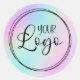 Sticker Rond Logo Pastel Rose Turquoise Holographique Dégradé