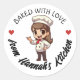 Sticker Rond Longs cheveux Brown Baker Kawaii Cuit avec amour