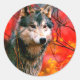 Sticker Rond Loup à travers les feuilles dans une forêt