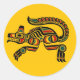 Sticker Rond Loup d'esprit haïda rouge et noir sur jaune