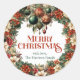 Vintage Élégant jusqu'à style victorien Sticker Classic Round avec une belle aquarelle illustrant la végétation saisonnière luxuriante et les baies sèches, ainsi qu'un élégant script festif. VioletPrints ©