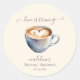 Autocollant de fête prénuptiale sur le thème du café charmant. La tasse de café a un cœur de mousse à l'intérieur ! Une calligraphie script étonnante ajoute au look. Un design merveilleux pour votre fête prénuptiale autour du café. Voir les articles coordonnés dans notre boutique, Enchanted Finch.
