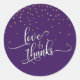 Sticker Rond Love & Merci Script Gold Confetti et foncé violet