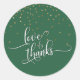 Sticker Rond Love & Merci Script, Gold Confetti et Leaf Green