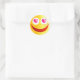 Belle illustration de dessin d'un visage jaune souriant et joyeux aux yeux en forme de coeur. Peut-être est-il amoureux. Image disponible sur divers cadeaux et produits.