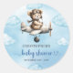 Celebrate your little aviator’s upcoming arrival with this adorable boy baby shower sticker featuring a cute teddy bear pilot flying a vintage airplane. Designed in a charming blue and brown color palette, this aviation-themed sticker adds the perfect touch of sweetness and adventure to any baby shower décor. Use it for favor bags, envelopes, gift packaging, party décor, thank-you tags, or diaper raffle prizes to instantly elevate your event’s theme.