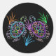 Illustration graphique des tortues de mer colorées et des algues qui brillent dans l'océan. Vous pouvez customiser ces autocollants cool avec le nom ou le message pour toute occasion. Idéal pour les autocollants de récompense en classe !