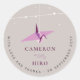 Sticker Rond Lumières de grue en papier violet Origami Mariage