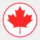 Sticker Rond Lumineuse Feuille d'érable canadienne Rouge Blanc
