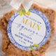 Ajoutez une touche de fraîcheur au thème de la fête de mariage de votre main squeeze avec cet autocollant rond classique personnalisé jaune et bleu Main Squeeze Lemon. Doté de citrons lumineux et d'accents bleus élégants, ce design est parfait pour une célébration de mariage sur le thème du citron. Idéal pour un thème de mariage au citron, ces autocollants améliorent les faveurs de fête et la décoration. Idéal pour les idées de mariage sur le thème du citron, les idées de mariage italien sur le thème du citron et les idées de mariage d'été !