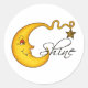 Lune lugubre, dorée et pétillante avec une parties scintillant d'or comme une étoile au-dessus, avec le mot brillant écrit dans un griffon cursif comme une police.