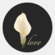 Un seul mariage blanc calla lily contre un arrière - plan noir dramatique avec amour en écriture or. Simple - élégant.