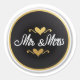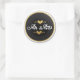 Étiquette mariage rond minimal et intemporel en calligraphie noir et blanc avec de minuscules coeurs dorés. Une touche classe pour les faveurs de mariage, les sacs cadeaux ou les enveloppes scellées.