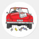 Joli dessin animé d'une voiture rétro vintage et marié et marié en convertible nous avons obtenu des autocollants mariés.